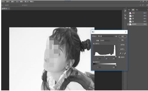 弹出色阶窗口,调整明暗度,让亮处更亮,暗处更暗,