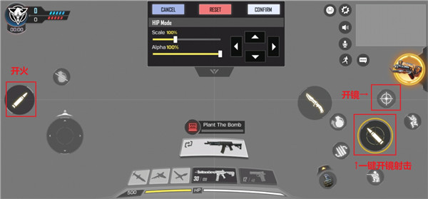 所以建议自定义一下界面,用第三指控制开镜键位,把开火键放到大拇指处,一键开镜开火缩小点放到食指或者中指处。