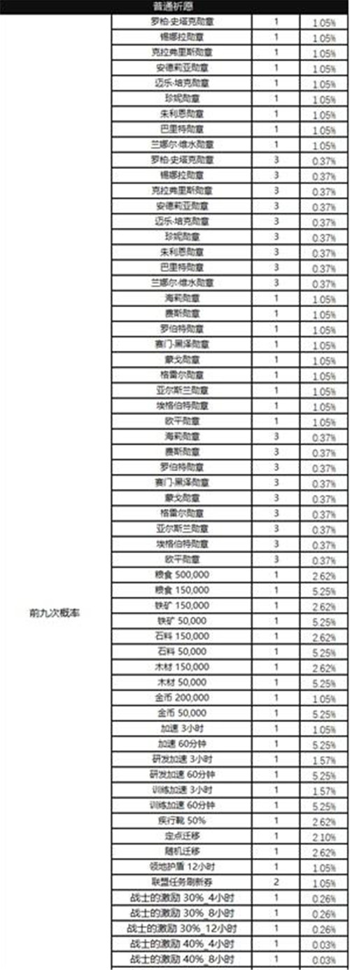 在权力的游戏凛冬将至中,七神圣堂作为不仅能给领地提供各类军事或资源的加成,玩家还可以在里面进行祈愿,获得各种开出各种指挥官勋章,祈愿分为高级祈愿与普通祈愿两种,获得勋章的种类与概率也不同,下面我们来看看普通祈愿能获得的勋章种类与概率吧。