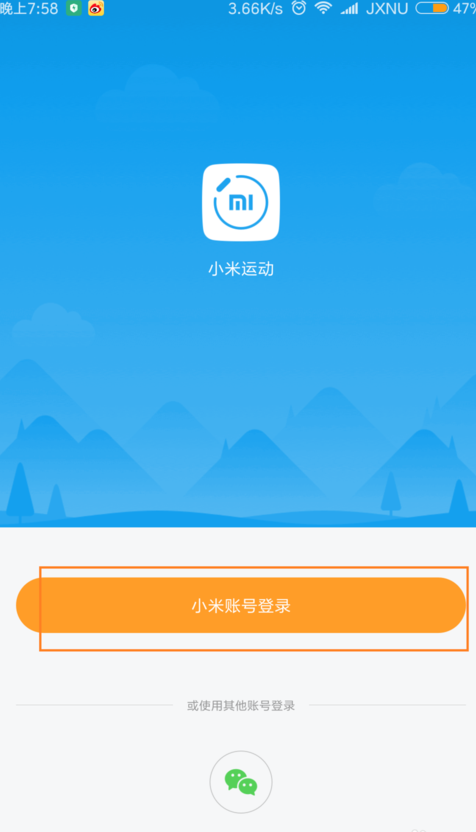 1、准备一个小米手环,之后下载【小米运动】,之后点击【小米账号登录】;