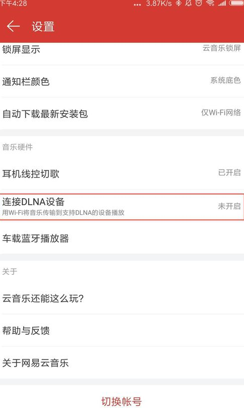 1、点击进入网易云的设置页面,在页面中点击【连接DLNA设备】;