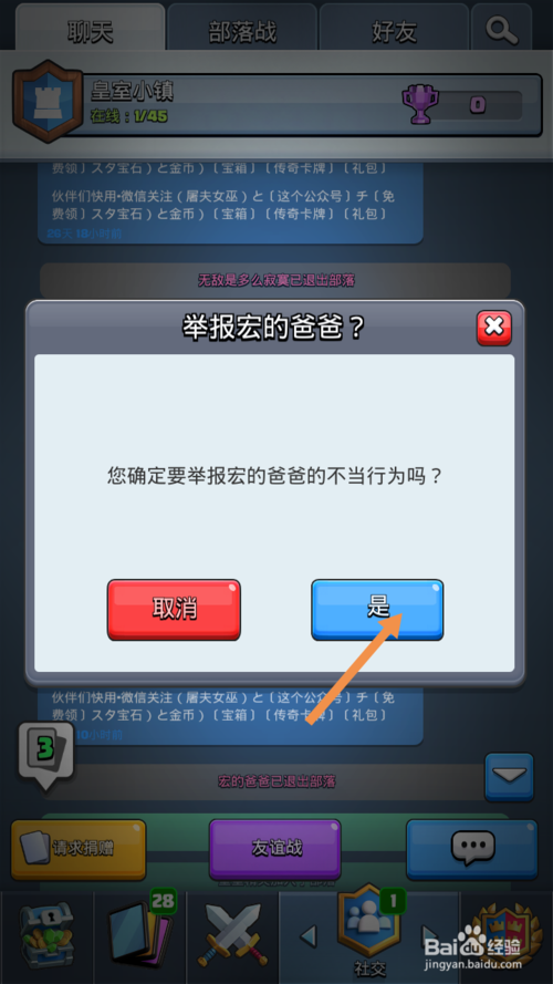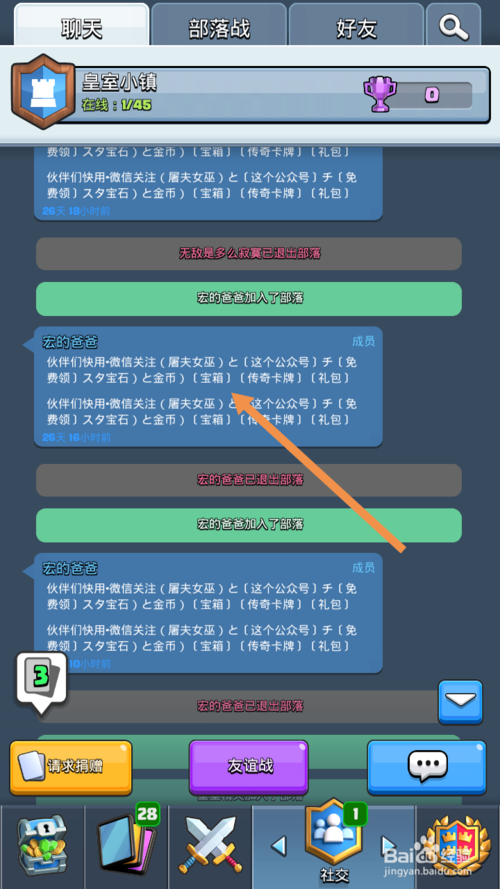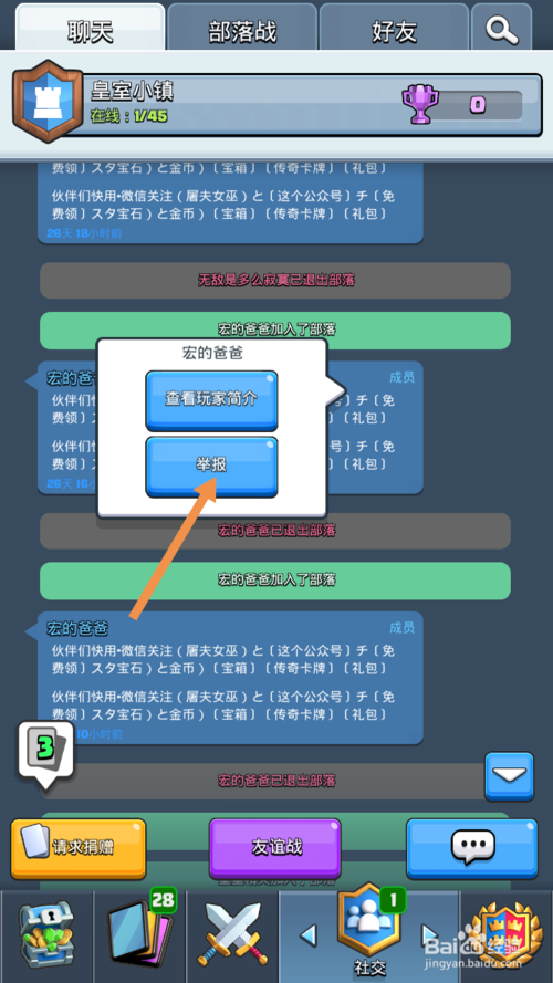4.在部落聊天窗口找到你想举报玩家发的消息,点击他发的消息。