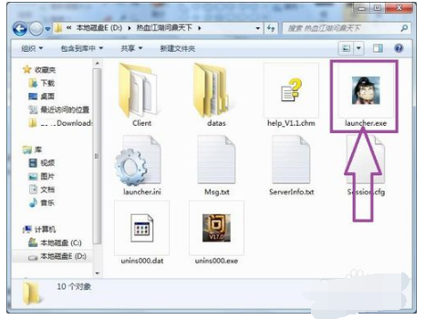 6.接下来打开C盘中热血江湖文件夹,在文件夹中找到“launcher.exe”的文件。