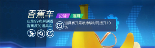 “香蕉车”在道具赛中可是一把好手,使用它不仅能把本就BUG的香蕉皮道具升级成巨型香蕉皮,还能在脱离水炸弹、水苍蝇后获得瞬间加速效果。还有增加10%的开局喷持续时间更是让驾驶它的司机从起点处就能一马当先!