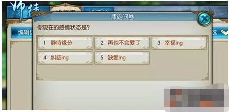 开启师徒系统后,玩家需要先回答一份小小的问卷将自己的基本信息录入找师傅或找徒弟平台。