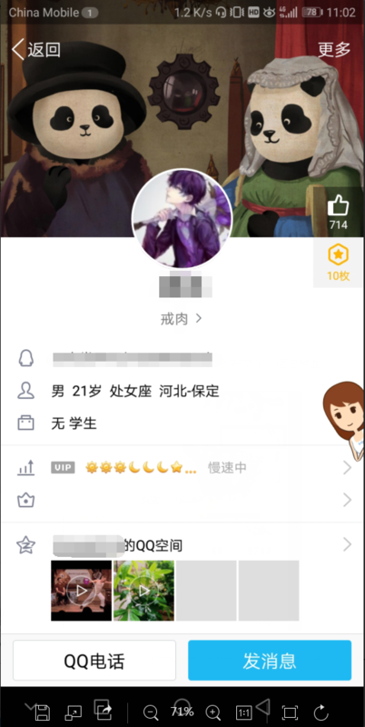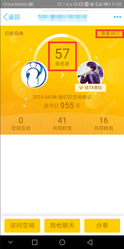 3.点击好友的个人空间,进入之后查看右上角,那里有一个亲密度表示;