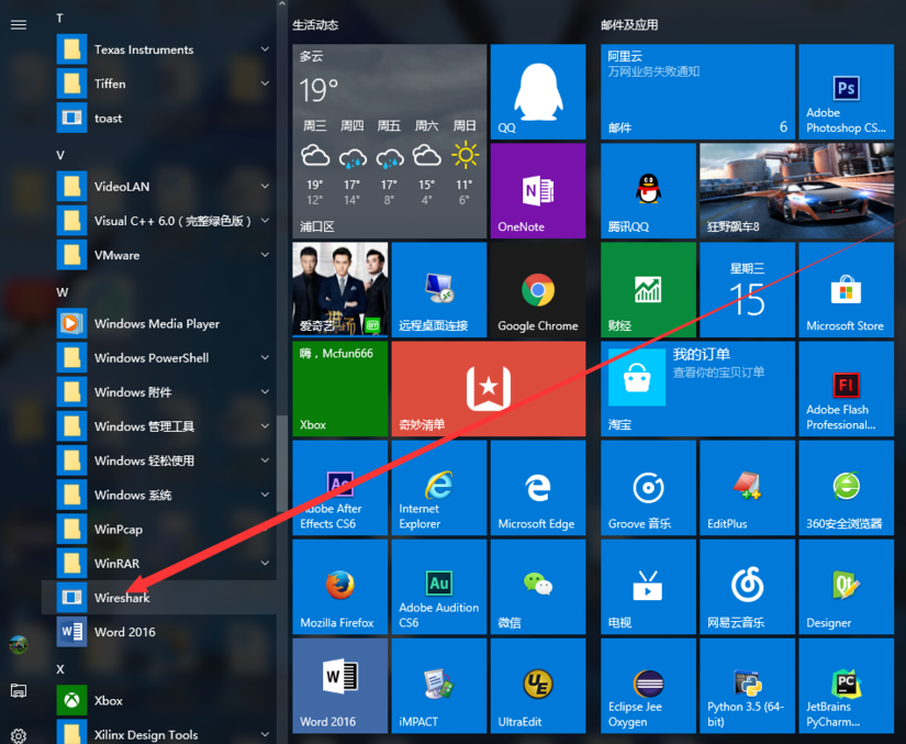 首先我们找到Wireshark抓包工具,然后点击打开,
