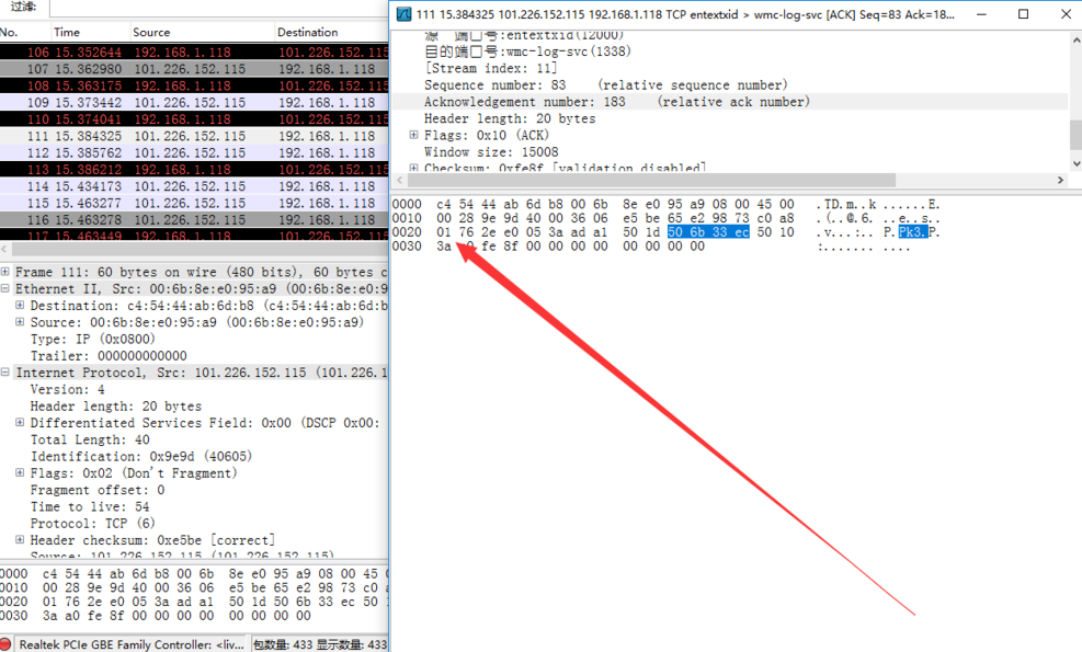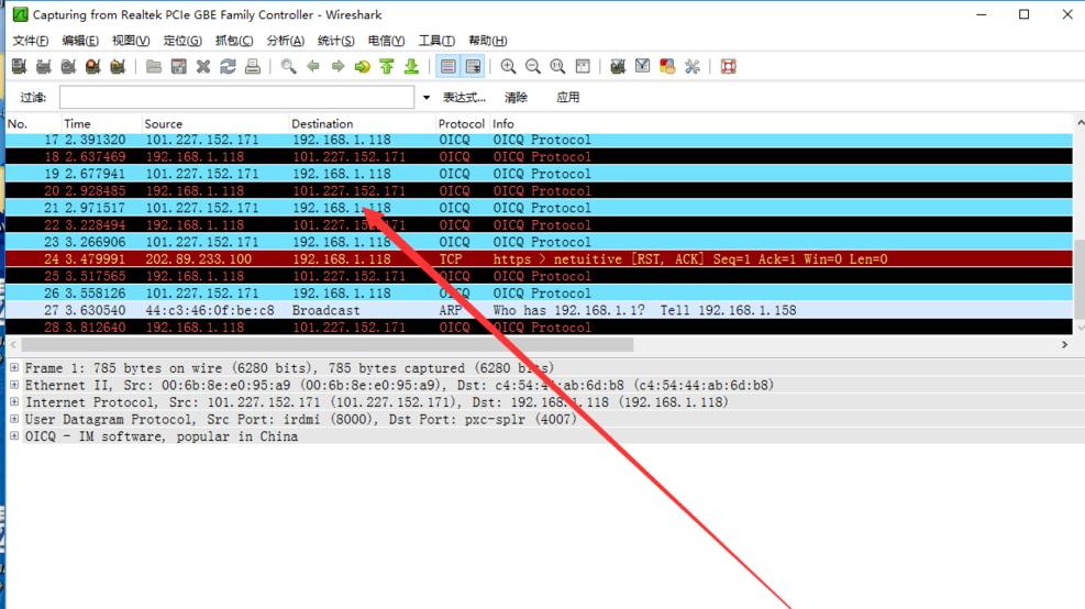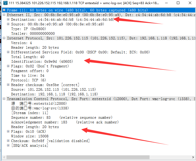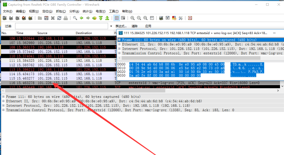 在这里我们可以通过源地址和目的地址来找到目标包,