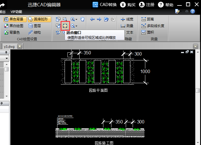 2.在位置工具中点击“适合窗口”工具,那么CAD文件中的图纸内容就会居中显示,这样就可以查看CAD文件内容了。