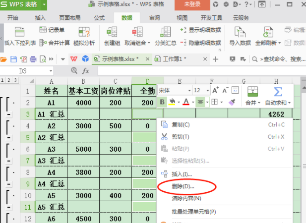 6、鼠标放在选中的空值单元格,右击鼠标,点击【删除】;