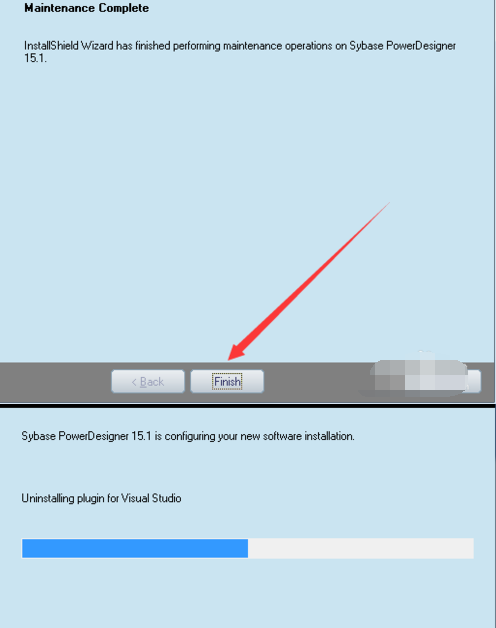 4然后整个应用就会进入卸载过程,这里我们只要等待即可。完成之后选择finish,这样powerdesigner就卸载完成了。