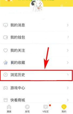 3、然后可以在我的页面找到“浏览历史”,点击进入。