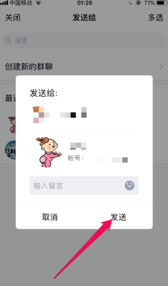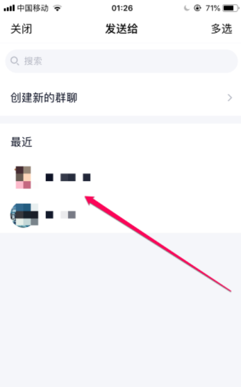 5、选择要把名片推荐的人。