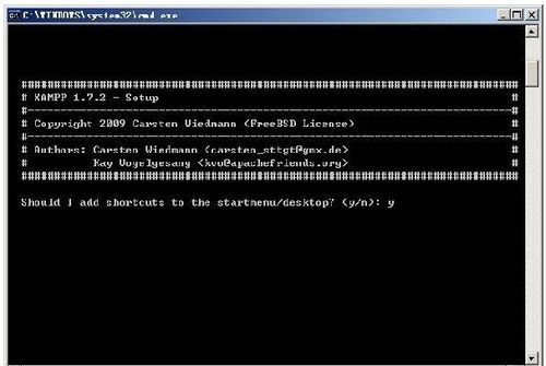 接下来问我们是否定位xampp的正确路径,晕太快跑过去了,没抓到图,大概就是Should I locate the xampp path correctly这个样子,选择y并回车。