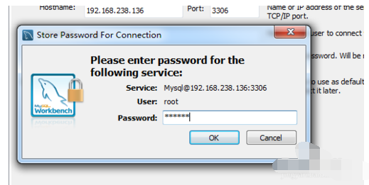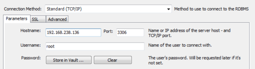 选择数据库的连接方法,输入IP地址、用户名,然后点击【store in vault】