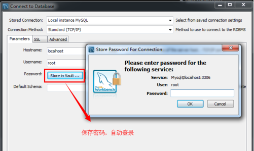 如果我们希望登录的时候不需要输入密码自动登录,那么单击Store in Vault按钮,系统会保存密码