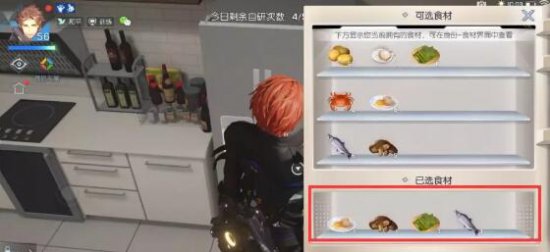 接着备菜,点击冰箱把食材顺序放好,顺序:鸡蛋---蘑菇---海带---野生鱼。