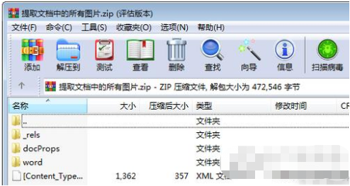 3、如图,我们可以看到文档变成了一个压缩包,打开压缩包,找到Word文件夹