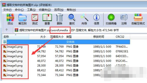 4、打开Word文件夹,然后展开media文件夹,可以看到所有图片