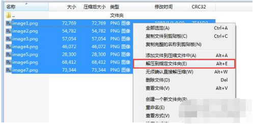 5、选中所有图片,鼠标右击,选择【解压到指定文件夹】