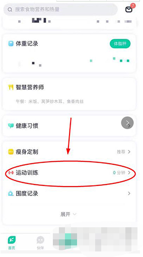 首先登录薄荷健康APP将界面往下拉,点击运动训练。