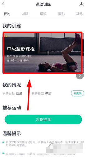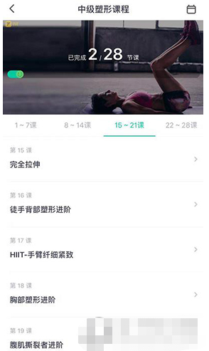 小编选择了塑形和中级,随后面板跳转出现一个中级塑形课程。