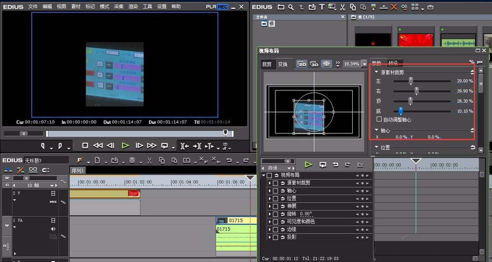 再打开素材的“布局”命令,快捷键是F7,我们可以通过布局命令菜单中的第一项“原素材裁剪”进行剪裁。