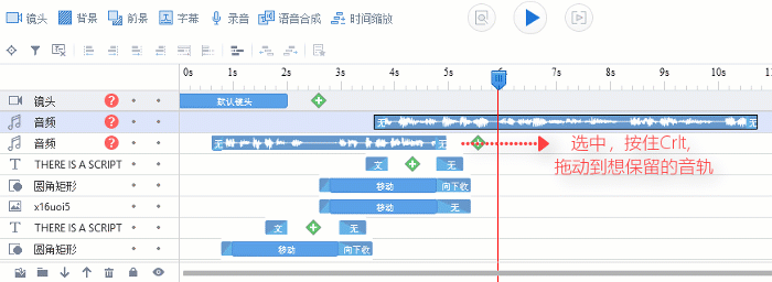 方法一: 在时间轴上选中需要合并的音轨A,然后按住Ctrl, 将音轨A拖动到音轨B的左边或右边位置,即可完成合并。