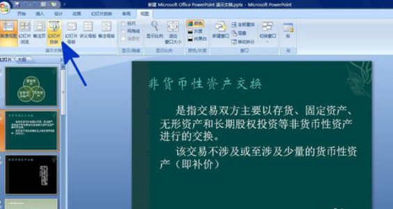 5、然后我们在菜单栏中点击“视图”,然后是“幻灯片放映”即可!