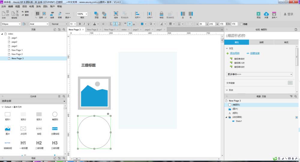 按上述要求,把动态面板里的state复制出三个,并把这三个state中的内容进行调整,如下图所示。