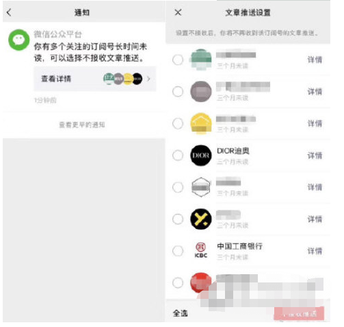 微信方面表示,这并不是一个新功能。在订阅号右上角菜单的设置中,用户可以关闭该订阅号的推送。此次系统提醒仅提供了批量关闭的便捷入口。这一操作并非取消关注订阅号,点击订阅号里右上角菜单设置,用户仍可以恢复公众号的推送。