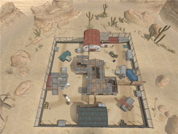 废弃仓库的故事发生在沙漠的某处,周围寸草不生,玩家需要在恶劣的环境下进行团队竞技。从鸟瞰图可以得知废弃仓库是一张小型的团队竞技地图,整张地图可分为左仓库、中央仓库和右仓库,由此看出这对枪法吃香的玩家们是非常有利的。