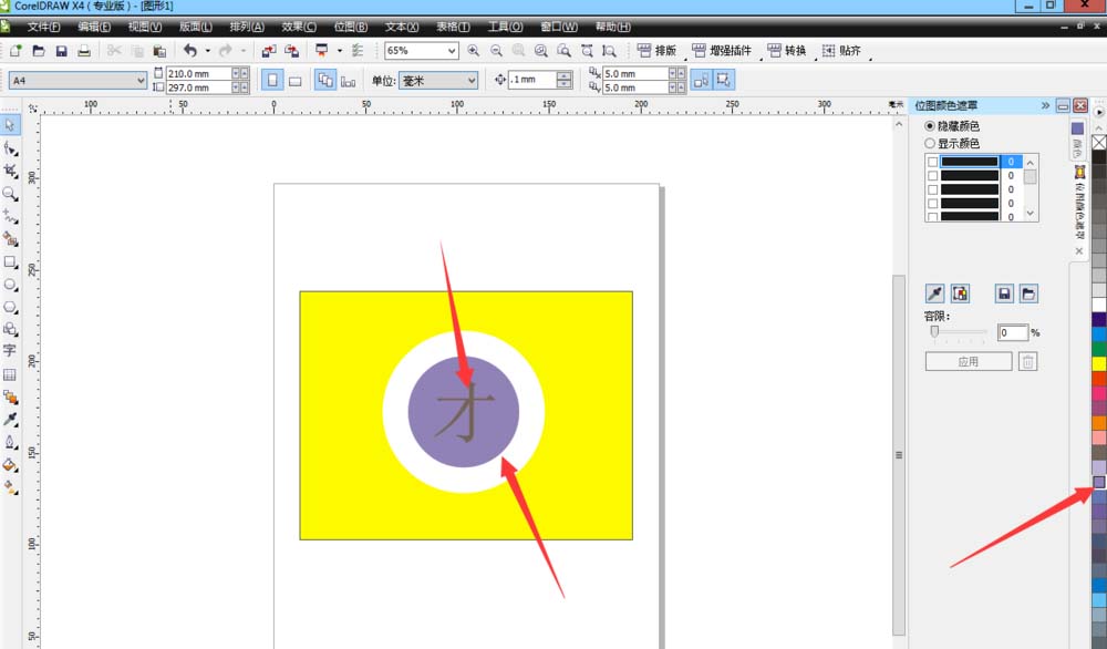 复制一个圆,等比放小,填充不同颜色,居中对齐。并在中部放上需要的字
