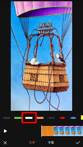 2、当视频素材拍摄完毕之后,我们就会进入到编辑界面,这时候再来选择右侧的“文字”按钮,就可以添加上下的白框了。