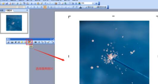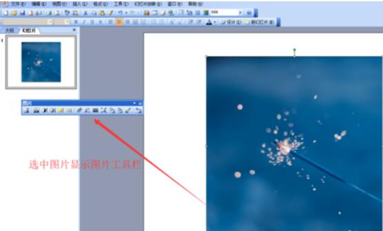 插入一张图片,并单击选中插入的图片,显示图片工具栏(如果你没有显示的话,需要在视图——工具栏——图片,自己勾选出来)。