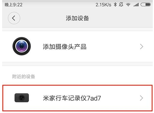 4、进入添加设备页面之后,在【附近设备】中找到记录仪,点击它;