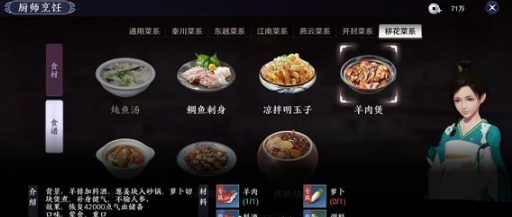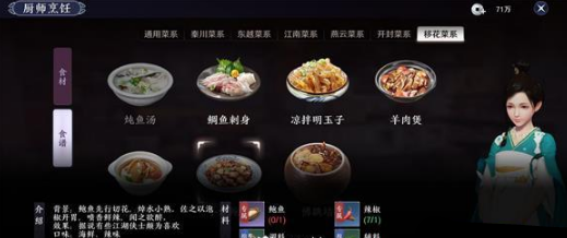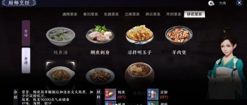 天刀手游移花菜有哪些