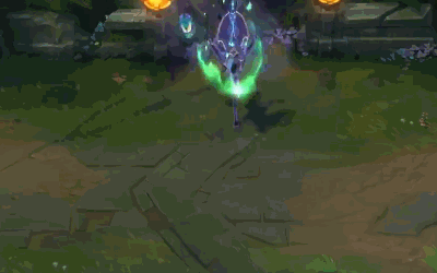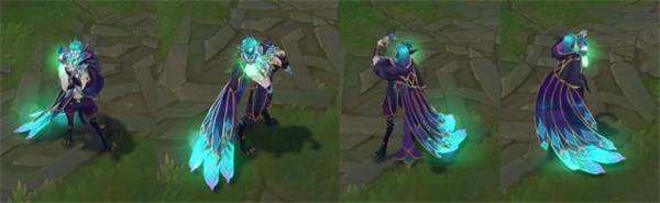 洛的技能特效虽然偏暗,但还是带有绿色调,开启R技能以后身后的披风变得像触手一样,W技能也不会跳起来而只是抬了一下手。