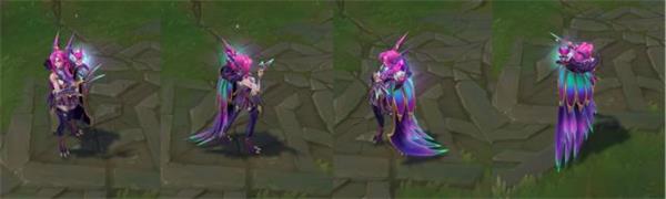 霞的技能特效还是非常突出的,尤其是羽毛非常华丽。在开启W技能时整个人还会陷入暗影当中。