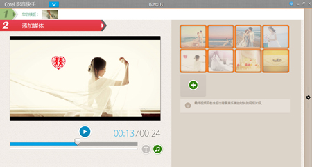 打开影音快手,会发现新的模板已被导入其中,然后点击步骤2:添加媒体,按照提示导入素材,完成素材替换,然后保存共享即可。
