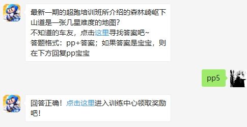 最新一期的超跑培训班所介绍的森林崎岖下山道是一张几星难度的地图?这是2019年12月25日跑跑卡丁车手游微信客户端超跑会答题的问题,答对问题可在训练中心领取奖励,大家知道这个问题的答案吗?下面小编为大家带来了跑跑卡丁车手游12月25日微信超跑会答题答案,一起来看看吧。