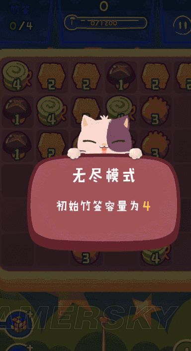 3.无尽模式的竹签上限初始只有4次,只有4次,只有4次,重要的事情说3遍!当屏幕上方的进度条满了之后,就会增加一次上限,最多增加到7~