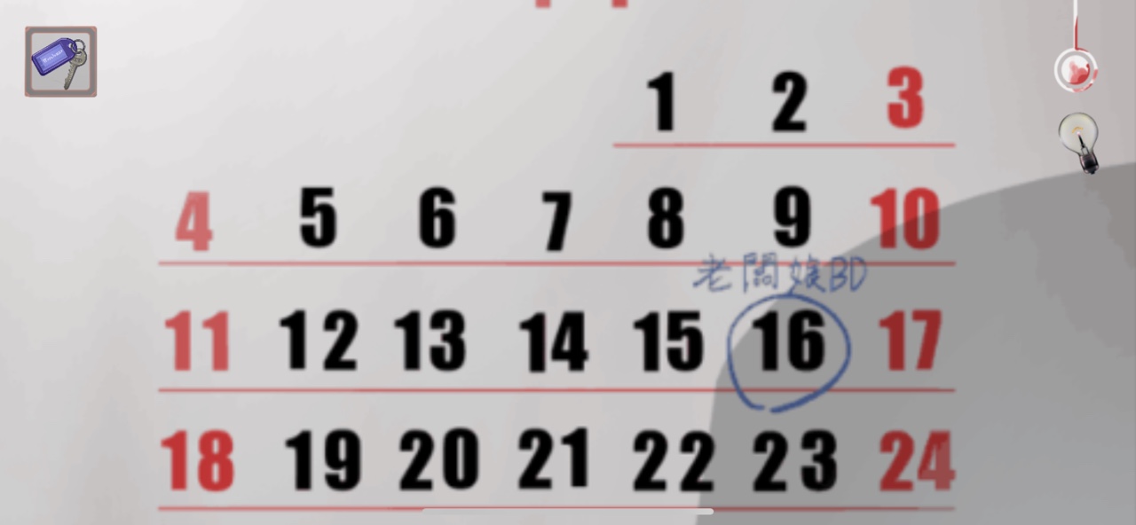 进入公司后,查看墙上的日历,获得信息【丽芯的生日是11月16日】