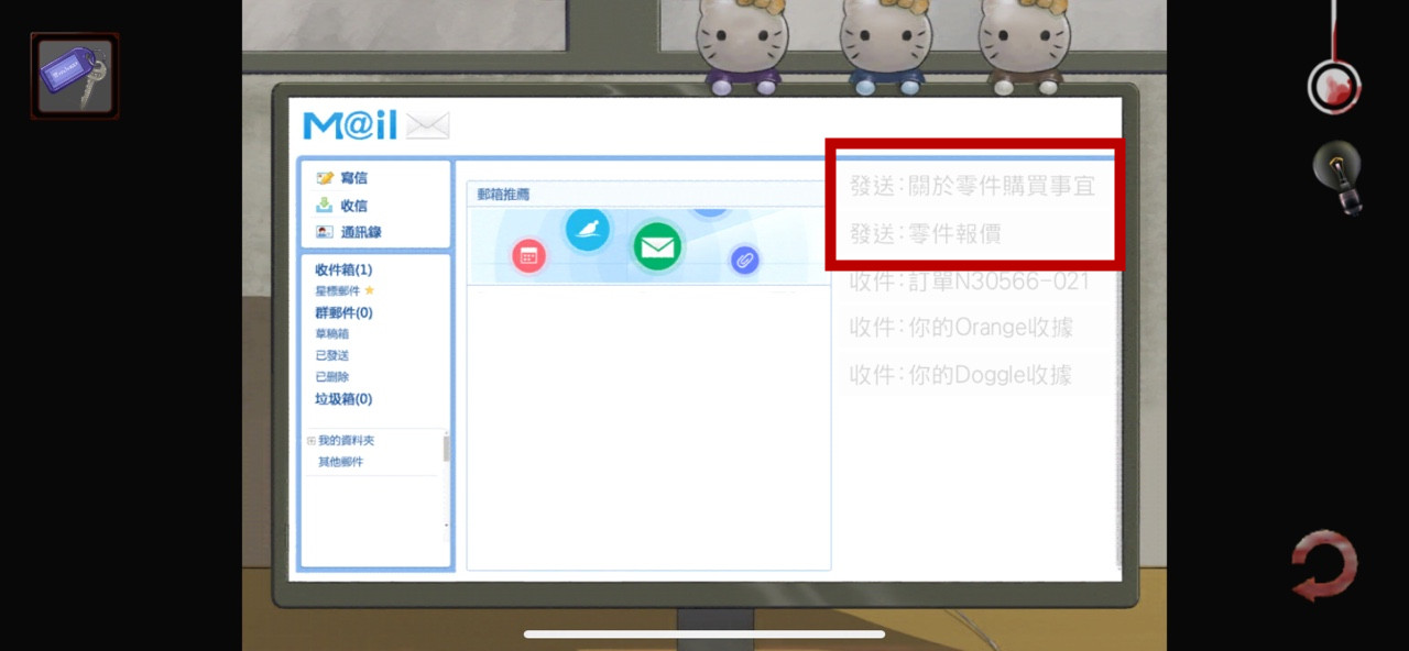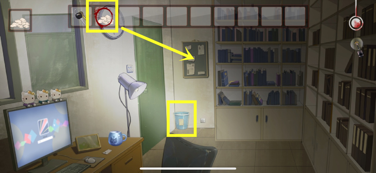 然后再使用【钥匙】进入丽芯办公室,剧情提示房间很黑需要更换灯泡。
