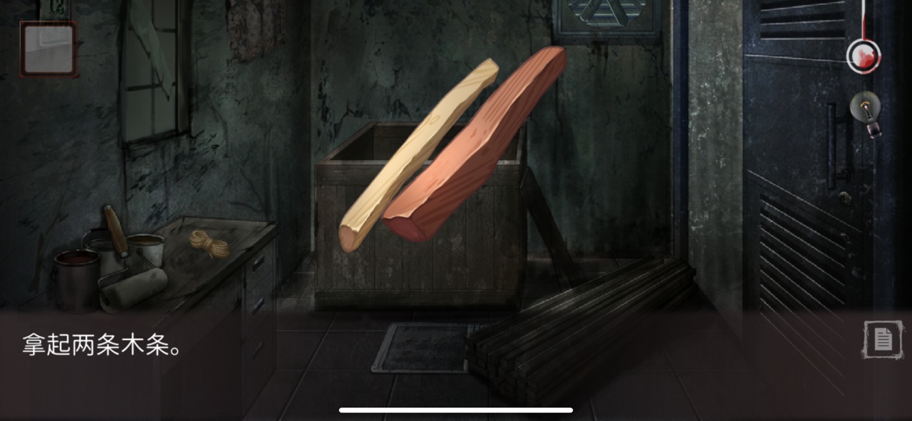 进入第二个房间,先收集地上的【纸片】,然后点击窗户,剧情提示窗外有人。