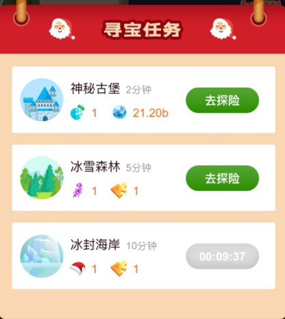 玩家需要点击寻宝任务,每次完成任务即可获得相应的圣诞饰品哦