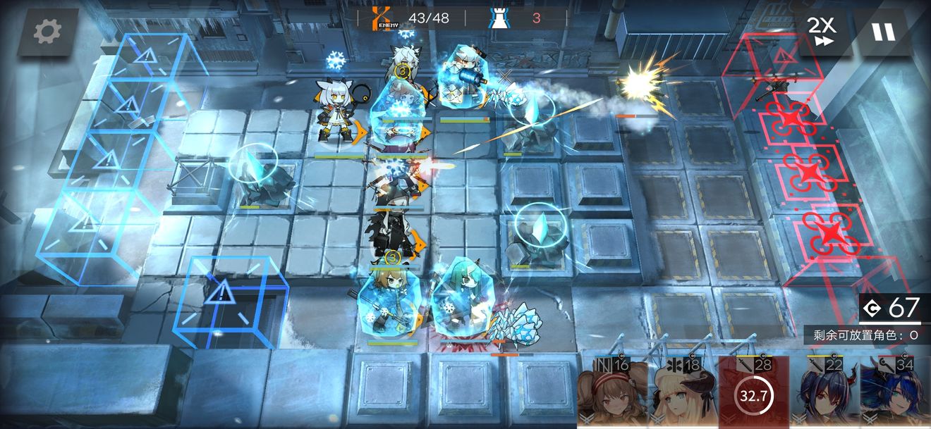 要点是在前面放两个盾来扛炸弹和冰虫,