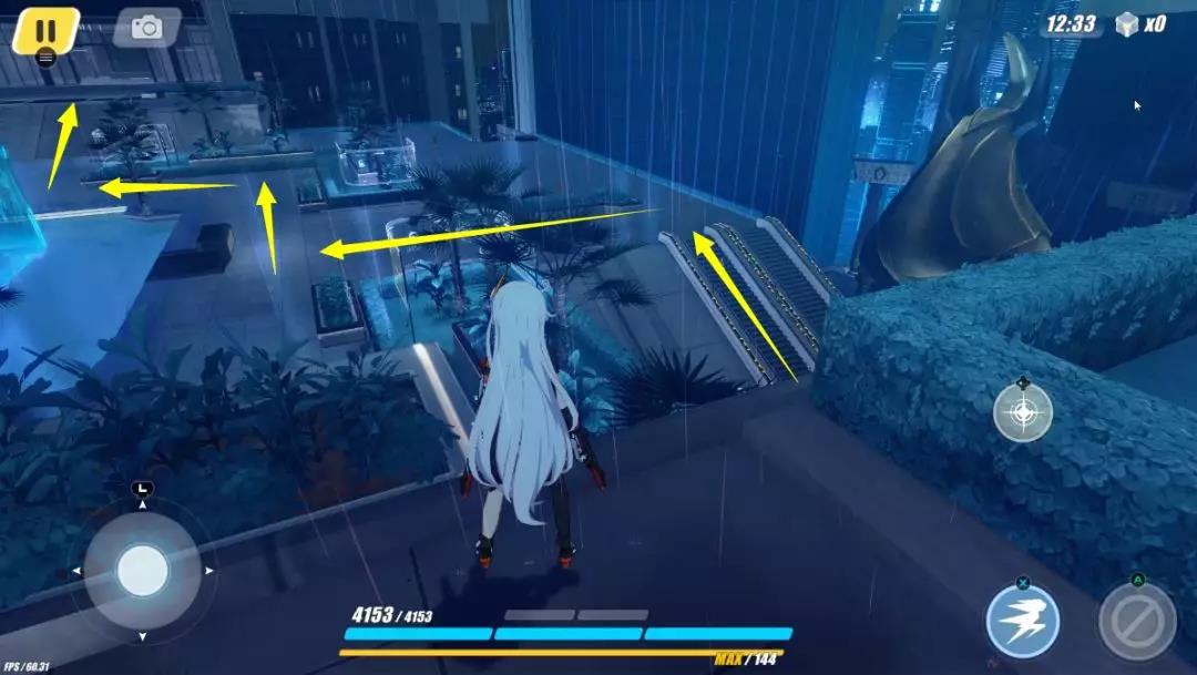 细心的小伙伴可能已经发现了,这个位置就是开头整体路线截图的地方。整个场景分为五块,出发点、广场、对面的大楼(任务点)、画面左边还有一块区域、以及截图地点的高台。