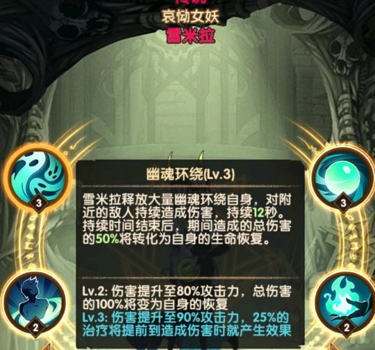 迷宫能换不用拼脸抽卡得到,其次女妖大招群伤续航满满,各种本都能用,适用面广,再有就是极限推图,主c要等级压制对面才能极限推图(队友比对面稍低没事),其他英雄要么没续航要么需要很能顶的前排(吃品质),女妖只需要个单紫狮子或者其他啥的就行,相对而言不太吃队友,还有为啥大佬说161发力,请看下图,LV3技能介绍,治疗提前回复,我自己是金就用了,升到140过的11,主要是抽卡不欧,被迫无奈启用,发现还不错吧,单论推图感觉跟金加羊头差不多,我有三宝,金商人女仆紫狮子光盾(单紫光盾脆成纸,一刀就躺)