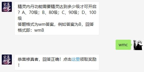 精灵内丹功能需要精灵达到多少级才可开启?这是2020年完美世界手游微信公众号1月9日每日一题的问题,各位完美世界手游玩家知道这个问题的答案吗?答对可以在完美世界手游微信公众号中进行抽奖,还不知道的游戏玩家,接下来小编为大家带来了问题的答案,不清楚答案的玩家赶快来看看吧!